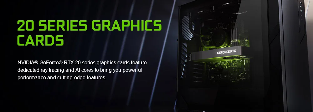 NVIDIA® GeForce® RTX 20 series graphics cards feature dedicated ray tracing and AI cores to bring you powerful performance and cutting-edge features.